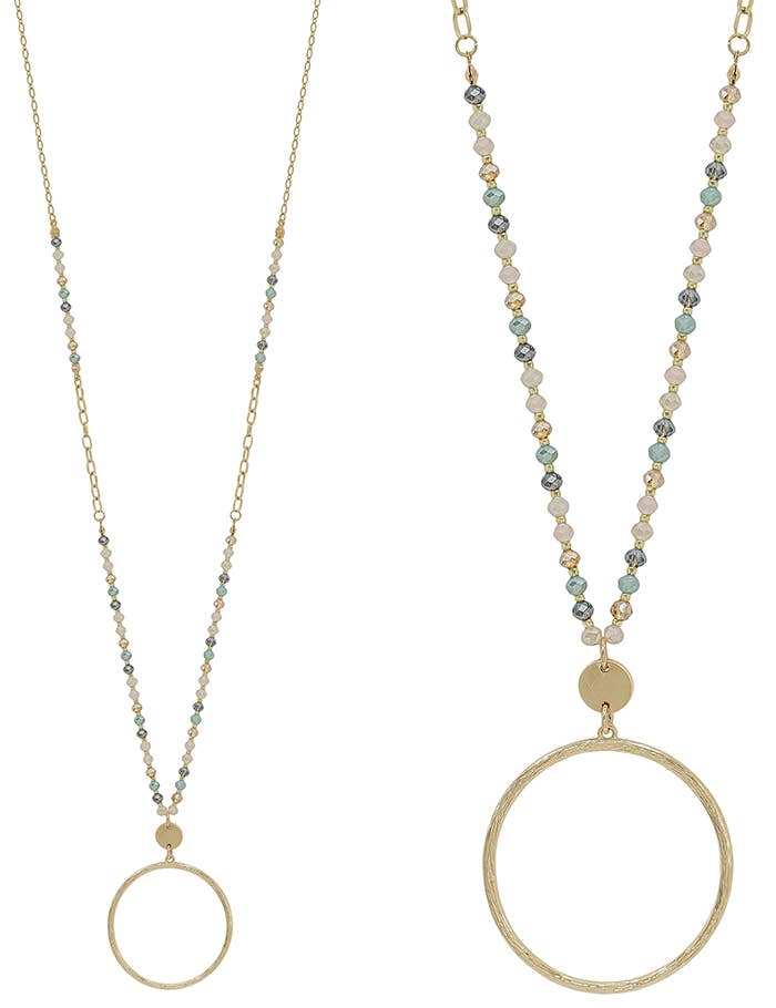30-32in LIGHT MULTI STATIONED NATURAL CRYSTAL CHAIN NECKLACE WITH CIRCULAR PENDANT