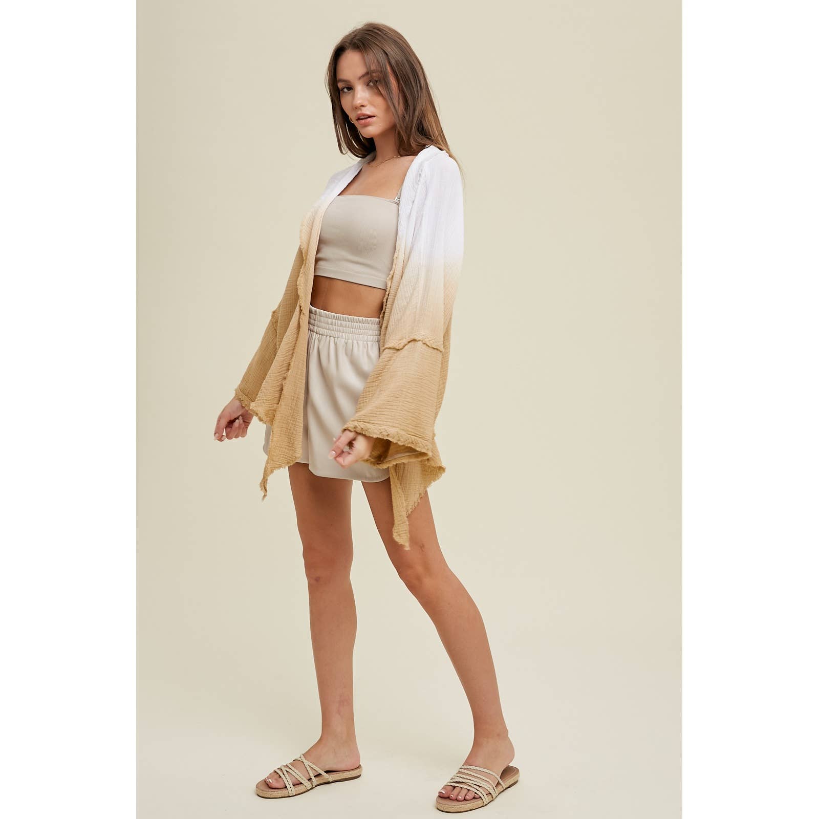 OMBRE COTTON GAUZE SELF TIE CARDIGAN - LONG SLEEVE, EASY, COMFY, CASUAL, EVERYDAY 100% COTTON